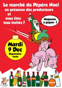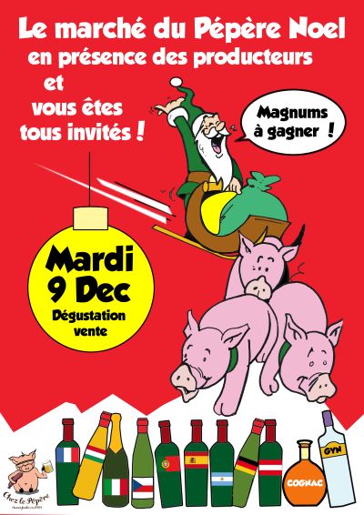 Mardi 9 décembre nous avons le plaisir de recevoir pour notre Marché du Pépère Noël Nicolas Despagne, Maison Blanche (Montagne St Emilion), Fabien Lapeyre, Château Lapeyre (Entre 2 mers), Paul Thirion (Spirit Erika) Pierre Dufourq (Cognac A de Fussigny), Alessandro Micelli Vino Vista (pour les vins Italiens) et Martin de Flow (vins Europe centrale mais pas que..)